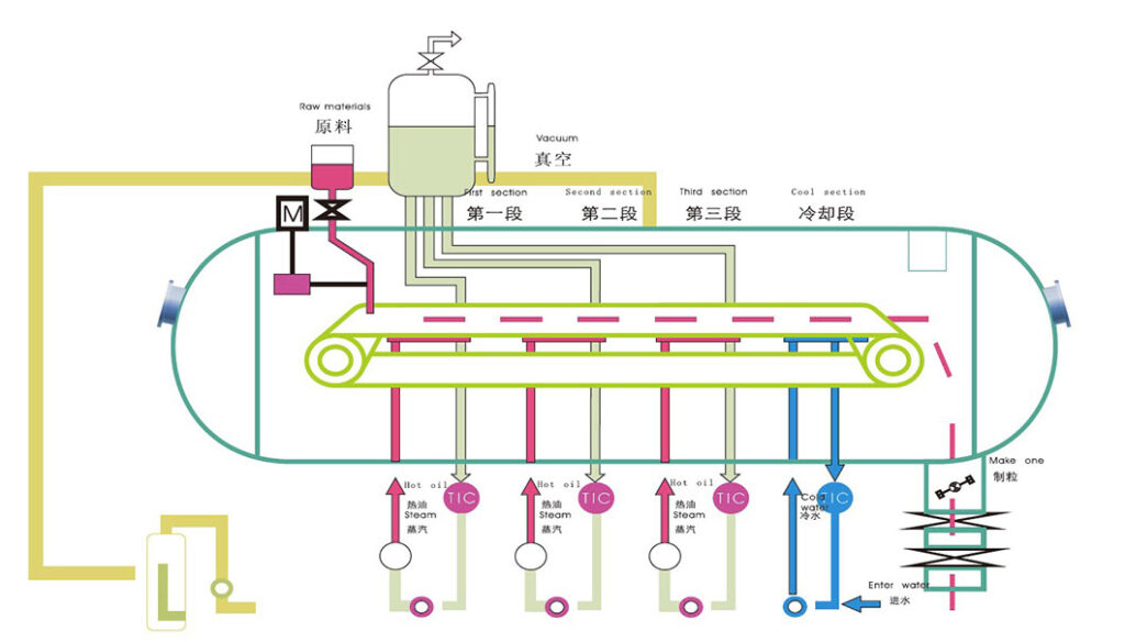 3. The whole drying process of Vacuum belt-type dryer divided into 4-5 sections, 3-4 heating sections and 1 cooling section.
