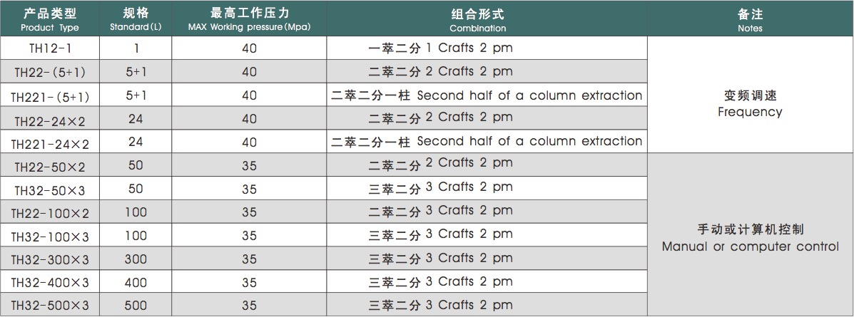 Note: We also can design and manufacture combination type of small & pilot device of different extrator according to customers’ requirements, design and manufacture 5000L large-scale supercritical CO₂ extraction device.
