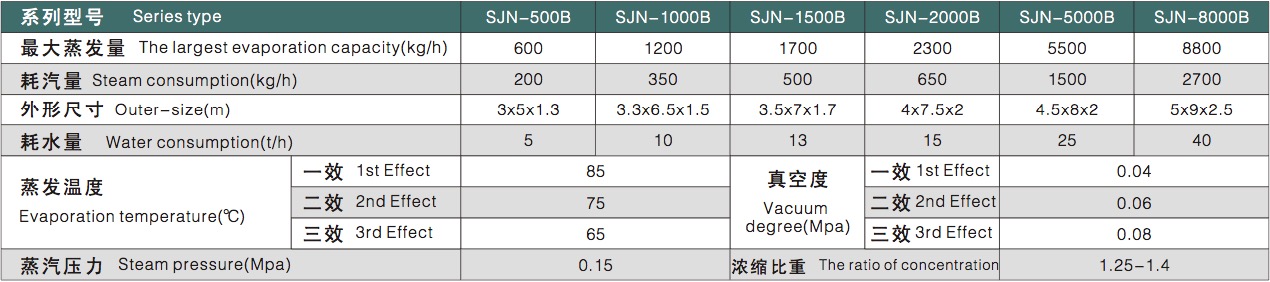 1. Energy efficiency, according to calculation of SJN -1000B type, in one year, can saving 5400 tons of steam, electricity 130000 degrees, about RMB 200000-250000 yuan in total(Compared with single-effect).