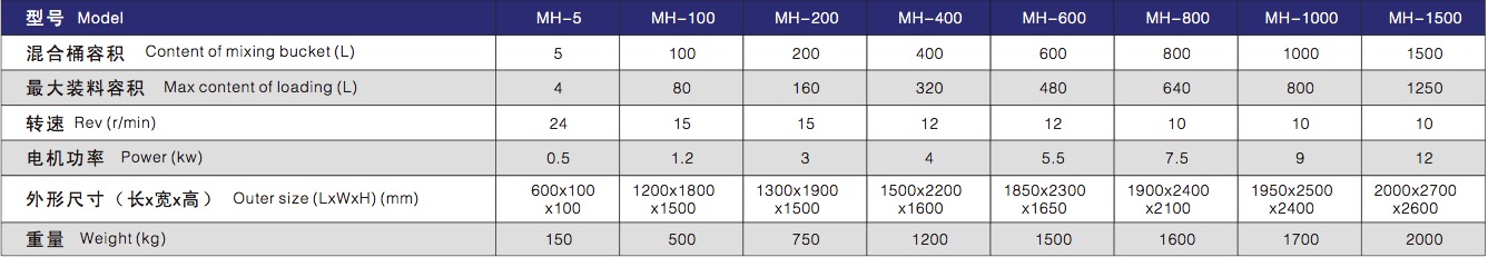 During the operation of the mixer, the drum rotates with multi direction, accelerating the flowing and diffusion of the material. In addition, compared with general mixer, it avoids the weight proportion deflexion and accumulation under a non-centrifugal force, guaranteeing uniform mixing and no dead corner.